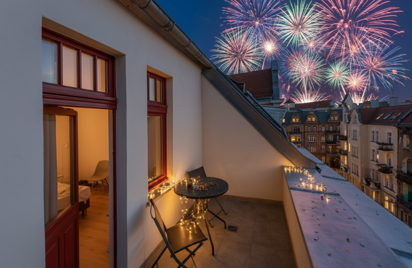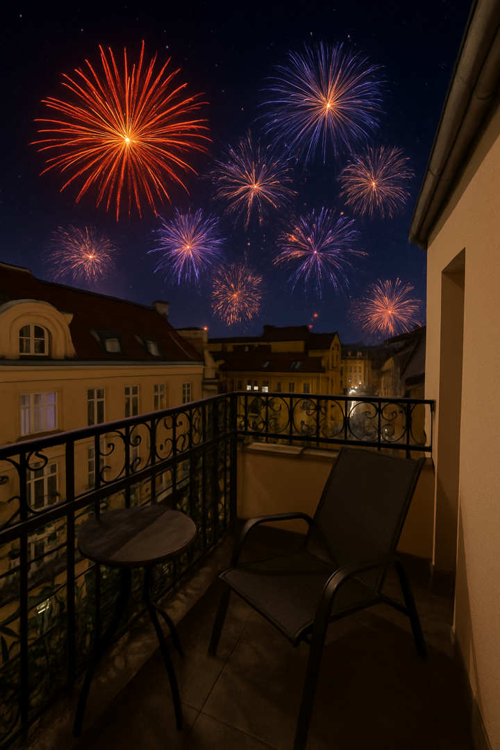 W Provenir Home Apartments znajdują się pokoje na 5. piętrze, które w noc sylwestrową dają możliwość podziwiania rozświetlonego miasta i sylwestrowych fajerwerków. Pokoje 503 i 504 z balkonami to doskonała propozycja dla osób, które chcą przywitać Nowy Rok w spokojniejszej atmosferze, z dala od tłumów, a jednocześnie w samym sercu Poznania.